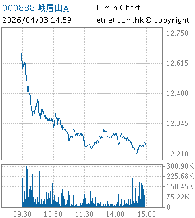 | 000888 | 峨眉山A | 12.250 | -0.470 | -3.695% | 1.48亿 | 27.5095 | 深股通 | |