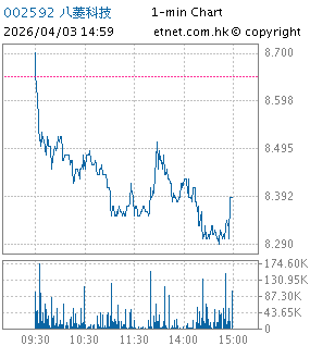 | 002592 | ST八菱科技 | 8.390 | -0.260 | -3.006% | 4.09千万 | 32.2692 | ||