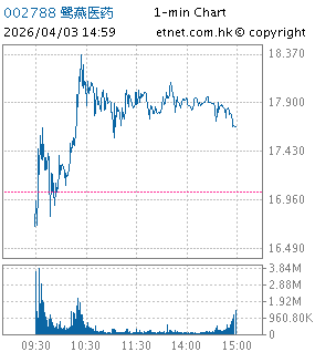 | 002788 | 鹭燕医药 | 17.670 | +0.630 | +3.697% | 16.62亿 | 19.8539 | ||