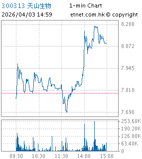 | 300313 | *ST天山生物 | 8.090 | +0.290 | +3.718% | 4.27千万 | -- | ||