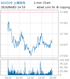 | 600009 | 上海机场 | 27.690 | -0.190 | -0.681% | 1.05亿 | 35.5 | 沪股通 | |