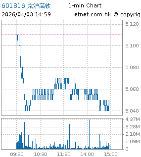 | 601816 | 京沪高铁 | 5.050 | -0.060 | -1.174% | 4.59亿 | 19.4231 | 沪股通 | |